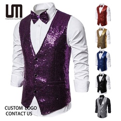Chaleco de lentejuelas para hombre: chaleco sin mangas de un solo pecho con botones, chaqueta de noche para escenario y fiesta, chaleco formal brillante