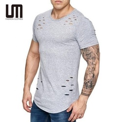 男性カジュアルスポーツ半袖穴フィットネスTシャツカスタムデザイン